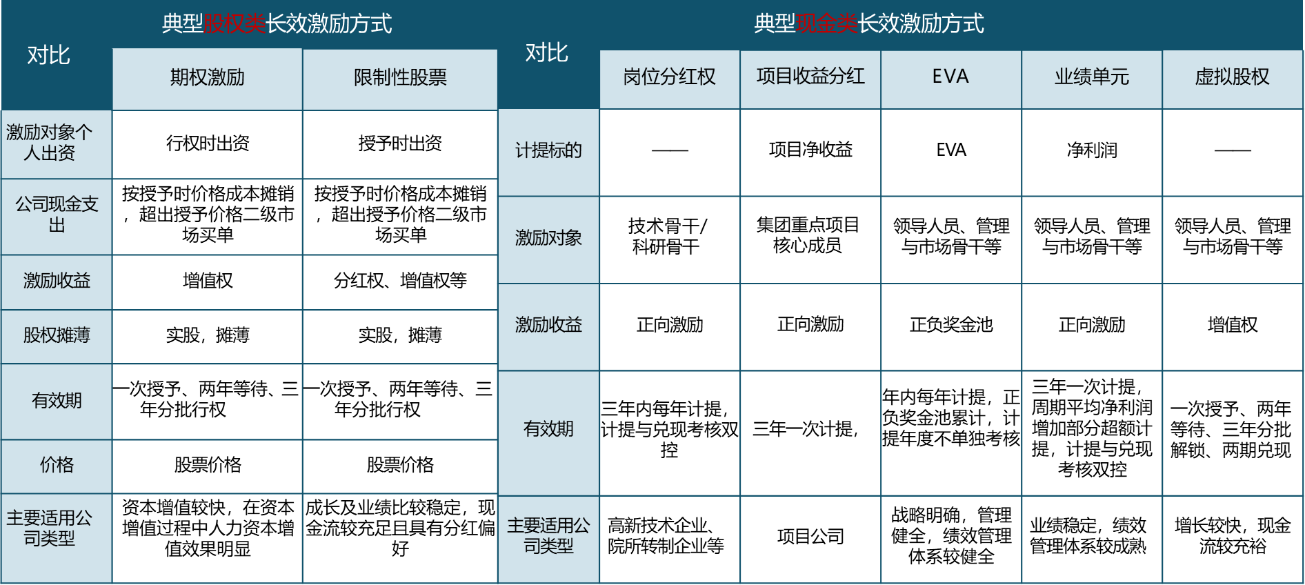 那么對(duì)于國(guó)有企業(yè)而言,中長(zhǎng)期激勵(lì)基礎(chǔ)政策是關(guān)鍵。自2019年國(guó)企改革“雙百九條”發(fā)布以來,國(guó)家在國(guó)企中長(zhǎng)期激勵(lì)體系建設(shè)上進(jìn)一步突破創(chuàng)新,由同一企業(yè)原則上以一種激勵(lì)方式為主,向鼓勵(lì)企業(yè)解放思想、綜合運(yùn)用各項(xiàng)正向激勵(lì)工具轉(zhuǎn)變。