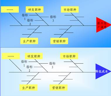 1)通過魚骨圖分析,尋找企業(yè)成功關(guān)鍵要素,即確定企業(yè)KPI維度,也就是明晰要獲得優(yōu)秀的業(yè)績所必須的條件和要實現(xiàn)的目標(biāo);