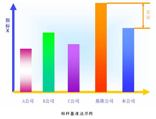 標(biāo)桿基準(zhǔn)法是企業(yè)將自身的關(guān)鍵業(yè)績行為與最強(qiáng)的競爭企業(yè)或那些在行業(yè)中領(lǐng)先的、最有名望的企業(yè)的關(guān)鍵業(yè)績行為作為基準(zhǔn)進(jìn)行評價與比較,分析這些基準(zhǔn)企業(yè)的績效形成原因,在此基礎(chǔ)上建立企業(yè)可持續(xù)發(fā)展的關(guān)鍵業(yè)績標(biāo)準(zhǔn)及績效改進(jìn)的最優(yōu)策略的程序與方法。標(biāo)桿基準(zhǔn)法成功的關(guān)鍵在于尋找業(yè)界最佳業(yè)績標(biāo)準(zhǔn)作為參照的基準(zhǔn)數(shù)據(jù)(如,客戶滿意度、勞動生產(chǎn)率、資金周轉(zhuǎn)速度等),確定最優(yōu)績效標(biāo)準(zhǔn)后,企業(yè)需以最優(yōu)業(yè)績標(biāo)準(zhǔn)為牽引,確定企業(yè)成功的關(guān)鍵領(lǐng)域,通過各部門及員工持續(xù)不斷的學(xué)習(xí)與績效改進(jìn),縮小與最優(yōu)基準(zhǔn)之間的差距。