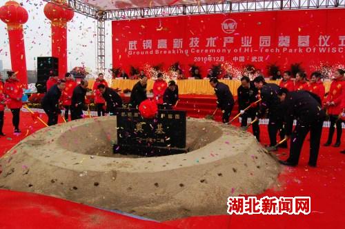 省委副書記、武漢市委書記楊松,武漢市長阮成發(fā),市委常委、東湖高新技術(shù)開發(fā)區(qū)黨工委書記賈耀斌,武鋼總經(jīng)理鄧崎琳、副總經(jīng)理張翔等揮鍬破土,為武鋼高科技術(shù)產(chǎn)業(yè)園奠基。