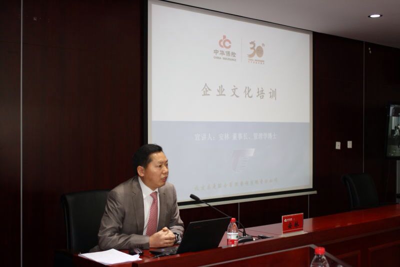 中華保險(xiǎn)控股公司董事長(zhǎng)陳景耀、總經(jīng)理李迎春等公司領(lǐng)導(dǎo)、處級(jí)(含)以上人員及子公司科級(jí)(含)以上人員參加了本次的視頻宣導(dǎo)培訓(xùn)。我司董事長(zhǎng)安林博士受邀為中華保險(xiǎn)控股公司全系統(tǒng)人員作《中華保險(xiǎn)新企業(yè)文化核心理念體系》宣導(dǎo)培訓(xùn)。