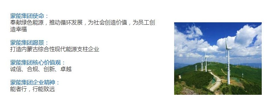 內蒙古能源發(fā)電投資集團有限公司(簡稱蒙能集團),成立于2006年,是在原內蒙古能源發(fā)電投資有限公司的基礎上,2009年與國電集團公司重組,2014年7月經過股權調整后重新成為自治區(qū)國有獨資的大型綜合性能源投資集團企業(yè),注冊資本金80億元人民幣。經營范圍包括:對電力、煤炭、石油、天然氣、煤制油、煤化工、建材、鐵路等行業(yè)投資開發(fā);經營火力發(fā)電、水力發(fā)電、天然氣發(fā)電、 風力發(fā)電、太陽能發(fā)電、可回收垃圾發(fā)電、生物質發(fā)電(憑資質經營);電力工程技術服務(僅限分支機構在資質證范圍內經營);熱力的生產和供應(分支機構經 營);煤炭零售經營(分支機構經營)。目前,公司下設27個二級單位,職工總數5000余人;擁有投產機組、權益容量、在建機組、核準待建和取得路條電力裝機容量986萬千瓦,資產總額271.53億元。