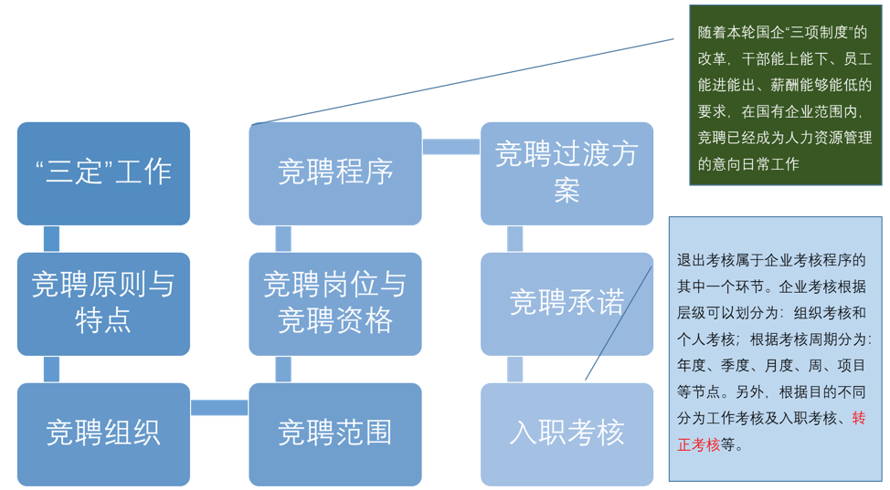 競(jìng)聘不僅僅是一個(gè)選拔的過(guò)程,應(yīng)該是上承企業(yè)的“三定” ,下接企業(yè)的績(jī)效評(píng)估的全過(guò)程。