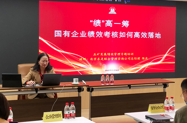 2022年11月16日,求是咨詢總經(jīng)理陳慶博士受邀為五礦發(fā)展股份有限公司(以下簡稱五礦發(fā)展)開展《績高一籌·國有企業(yè)績效考核如何高效落地》專題講座。五礦發(fā)展財務(wù)總監(jiān)、黨委委員譚巍、五礦發(fā)展各職能部門以及各直管企業(yè)分管業(yè)績考核的相關(guān)人員參加了此次講座。此外,還通過五礦發(fā)展大課堂對此次講座進(jìn)行了現(xiàn)場直播。