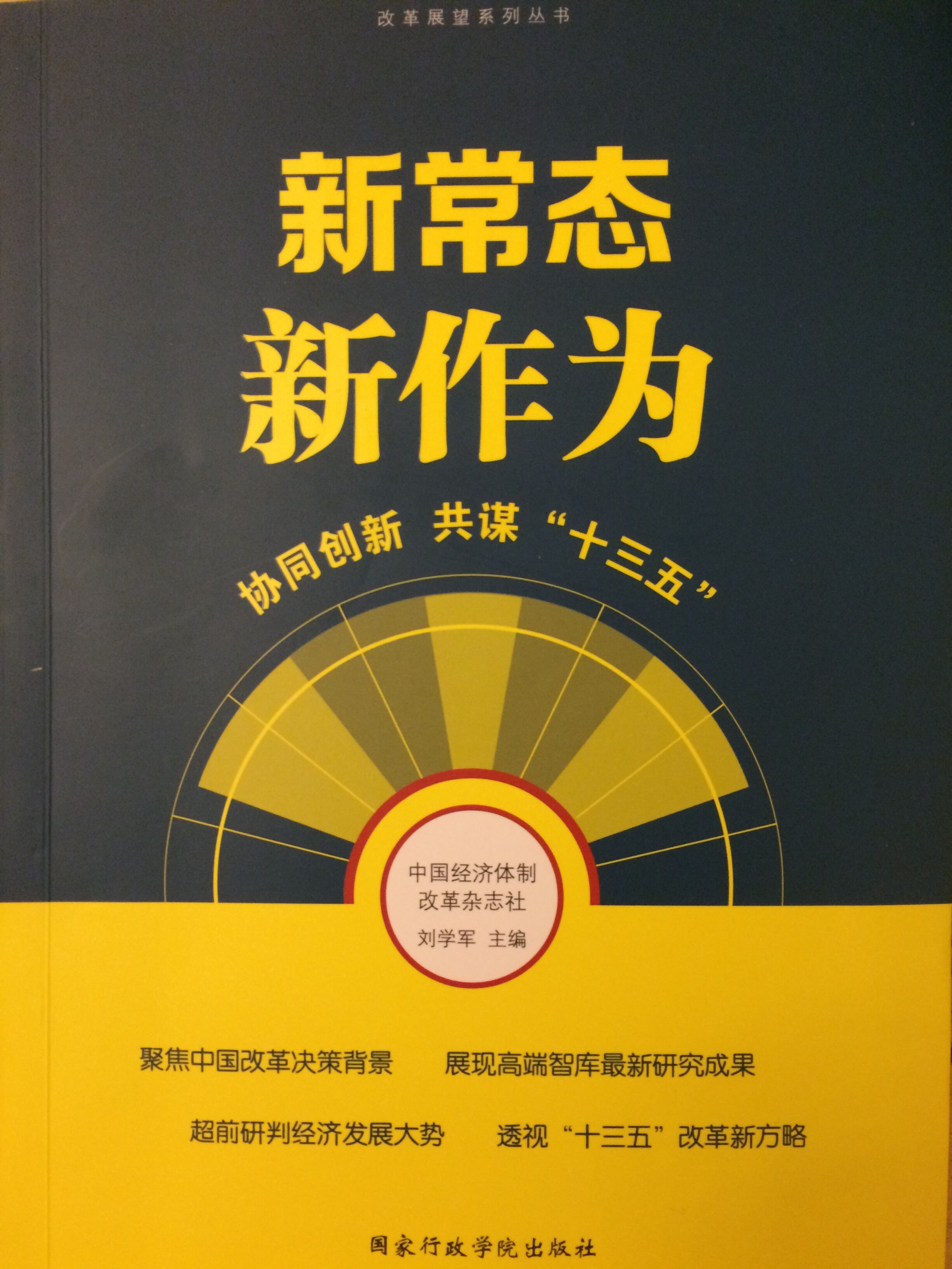 日前,我司董事長安林博士的論文“國有資產(chǎn)管理與國企治理”(2.2萬字),被中國經(jīng)濟(jì)體制改革雜志社編著、國家行政學(xué)院出版社出版的改革展望系列叢書《新常態(tài)新作為》所收錄。論文內(nèi)容主要來源于作者近些年發(fā)表于《改革內(nèi)參》的若干重要論文或報告。該書以協(xié)同創(chuàng)新、共謀“十三五”為特色,旨在聚焦中國改革決策背景,展現(xiàn)高端智庫最新研究成果,超前研判經(jīng)濟(jì)發(fā)展大勢,透視“十三五”改革新方略。該書由著名經(jīng)濟(jì)學(xué)家、原國家發(fā)改委副主任高尚全作序。
