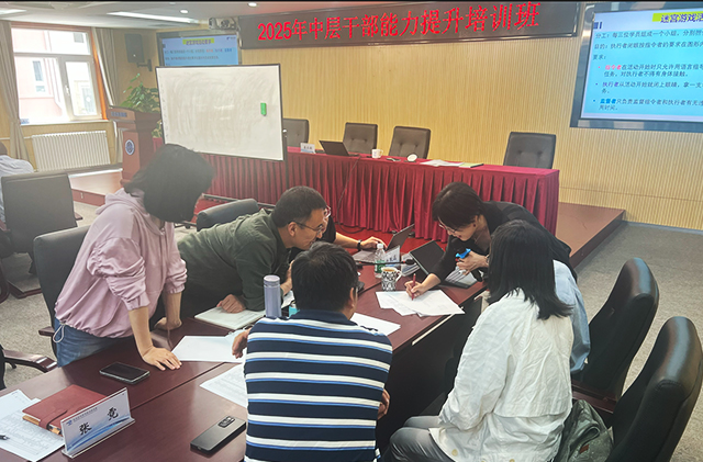 在第一天的課程中,崔教授以“戰(zhàn)略思維-組織協(xié)調(diào)-激勵賦能-自我迭代”四維領導力模型為框架,結合戰(zhàn)略地圖、OKR等工具,解析目標分解與過程管控方法。通過“情境領導力”工具對員工發(fā)展階段進行診斷,配套指令型、輔導型等差異化激勵策略,并引入OJT工作指導法與BIA反饋模型,構建“目標可視化-過程管控-結果閉環(huán)”的執(zhí)行鏈條。沙盤推演環(huán)節(jié)模擬真實管理場景,學員分組完成危機決策,在實戰(zhàn)中鍛煉資源整合與團隊協(xié)同能力。