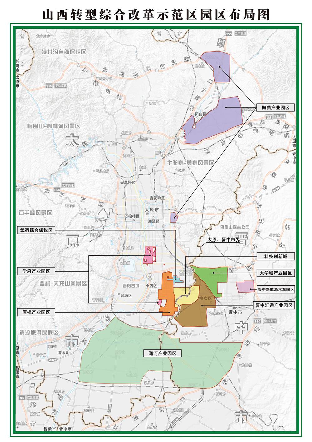 山西轉(zhuǎn)型綜改示范區(qū)是山西省委、省政府為加快創(chuàng)新發(fā)展,實(shí)現(xiàn)振興崛起,在太原都市區(qū)核心區(qū)域整合了4個(gè)國(guó)家級(jí)開(kāi)發(fā)區(qū),3個(gè)省級(jí)開(kāi)發(fā)區(qū)以及山西大學(xué)城,并向南、向北建立擴(kuò)展區(qū)開(kāi)辟而成的一個(gè)轉(zhuǎn)型綜改示范區(qū)。全區(qū)總規(guī)劃面積約600平方公里,將重點(diǎn)打造先進(jìn)制造、新能源、新材料、電子信息、健康醫(yī)療、文化創(chuàng)意等6大專(zhuān)業(yè)化產(chǎn)業(yè)園區(qū)。