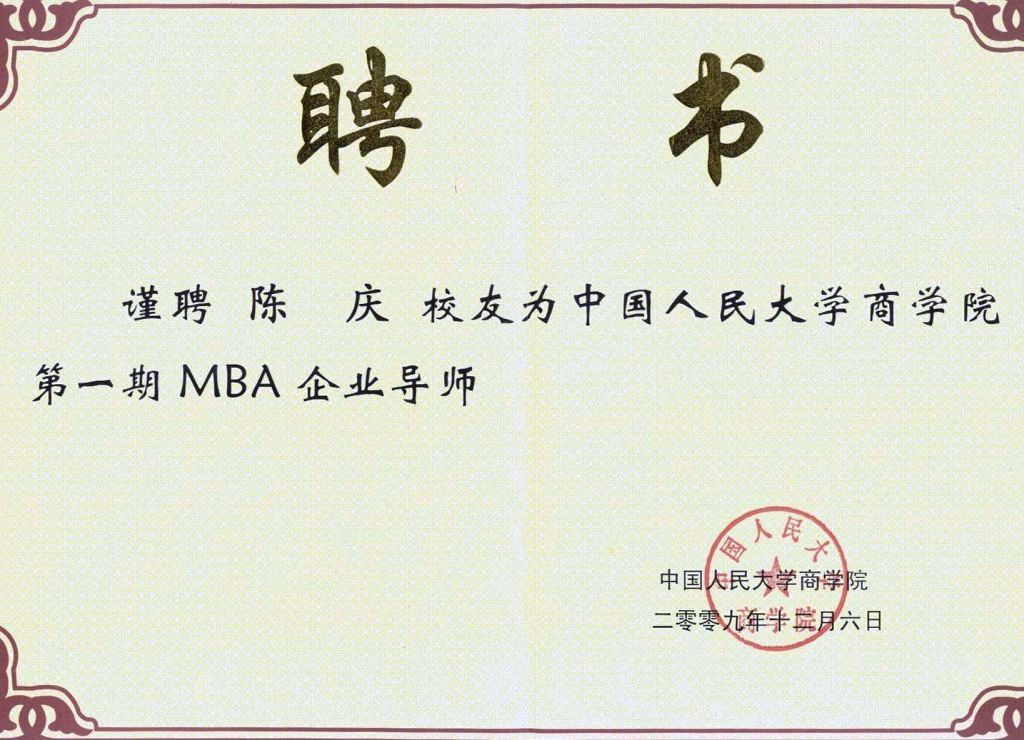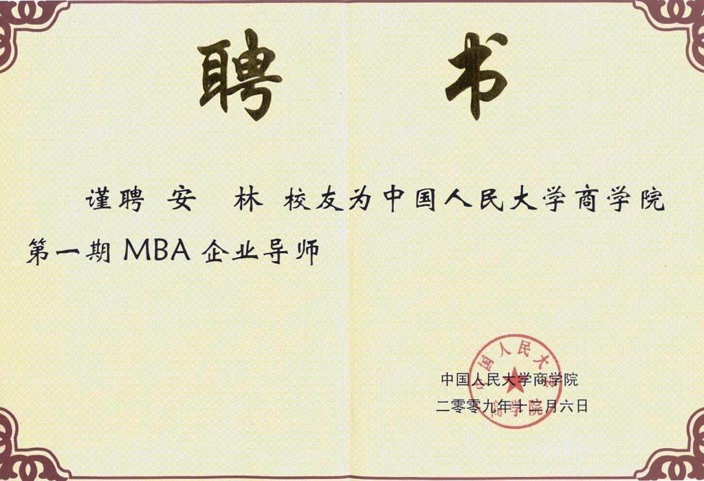 2009年12月6日,我司總裁安林博士、副總裁陳慶博士分別獲聘中國人民大學(xué)首批MBA企業(yè)導(dǎo)師。