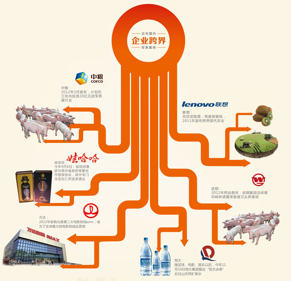 聯(lián)想、中糧、恒大、萬達(dá)與娃哈哈,中國絕大多數(shù)知名企業(yè)集團(tuán),正擠在“跨界”這條路上。