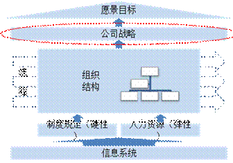戰(zhàn)略遵從于公司的愿景和目標(biāo),組織結(jié)構(gòu)是根據(jù)公司戰(zhàn)略而設(shè)計的,而組織結(jié)構(gòu)的良好運(yùn)行需要有效的流程來貫穿,同時為了運(yùn)行有序,需要制定一系列的制度來硬性規(guī)定組織運(yùn)行的秩序,人力資源是組織運(yùn)行的源動力,相對于制度來講,人力資源的管理是具有彈性的,涉及到如何激勵的問題,最后,整個組織的有效運(yùn)行離不開良好的信息交流和溝通。