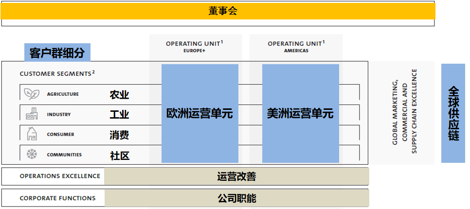 為更好地進行全球資源配置和業(yè)務整合,近年來,德國鉀鹽集團大力推進集團組織管控體系變革,采用新的矩陣型組織管控體系(如下圖所示),加強跨國家區(qū)域的戰(zhàn)略決策和經(jīng)營管理協(xié)調(diào)效能。
