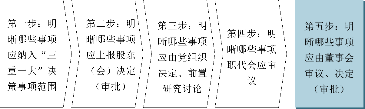 值得注意的是,《關(guān)于進(jìn)一步推進(jìn)國有企業(yè)貫徹落實“三重一大”決策制度的意見》明確規(guī)定,董事會、未設(shè)董事會的經(jīng)理班子研究“三重一大”事項時,應(yīng)事先與黨委(黨組)溝通,聽取黨委(黨組)的意見?!秶衅髽I(yè)公司章程制定管理辦法》也提出,明確黨組織研究討論是董事會、經(jīng)理層決策重大問題的前置程序。這意味著,企業(yè)“三重一大”決策事項中除了由黨組織決定的,其余事項均應(yīng)在決策前,由黨組織前置研究討論。