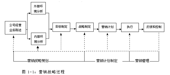 市場(chǎng)營(yíng)銷戰(zhàn)略形成過(guò)程可分為三個(gè)階段:營(yíng)銷戰(zhàn)略策劃、營(yíng)銷計(jì)劃制定和營(yíng)銷管理,見(jiàn)圖1-1。