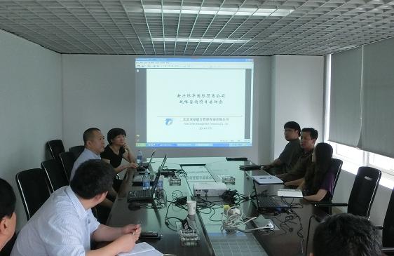 2014年7月7日,新興際華國際貿(mào)易公司戰(zhàn)略咨詢項目在京啟動。我公司合伙人、副總經(jīng)理郭良琴女士(左一)及求是項目組成員出席項目啟動會。新興際華國際貿(mào)易公司戰(zhàn)略相關(guān)部門負責人聽取了本次項目啟動會的匯報。