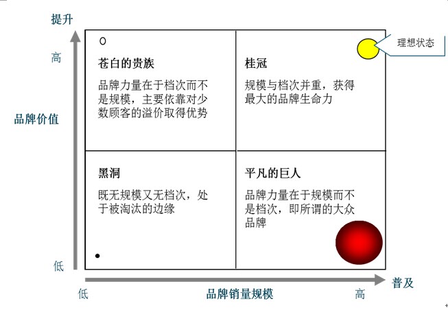 品牌價(jià)值和品牌銷量?jī)蓚€(gè)維度構(gòu)成四個(gè)象限:
